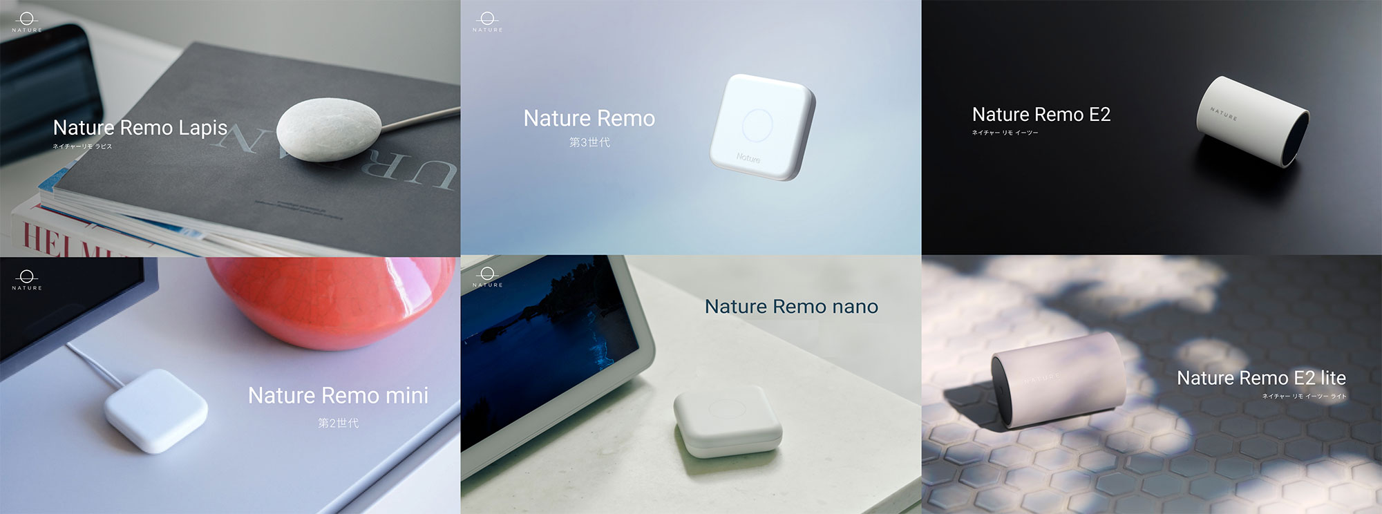 Natureは、エアコンや照明など家電をスマートフォンから操作できるスマートリモコン「Nature Remo」シリーズ(累計販売台数70万台 *)や、電力使用を最適化するスマホHEMS「Nature Remo E2」を提供しています。