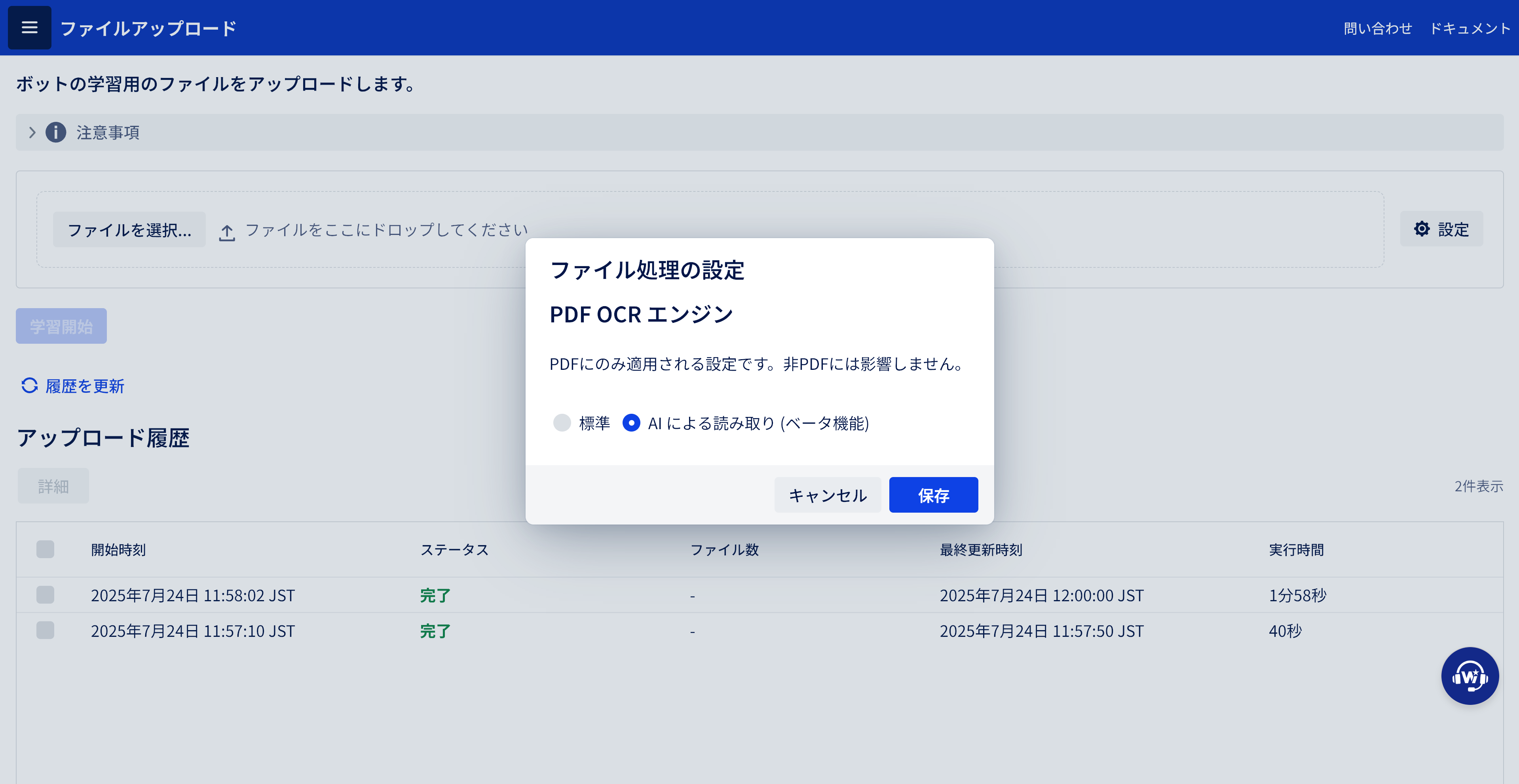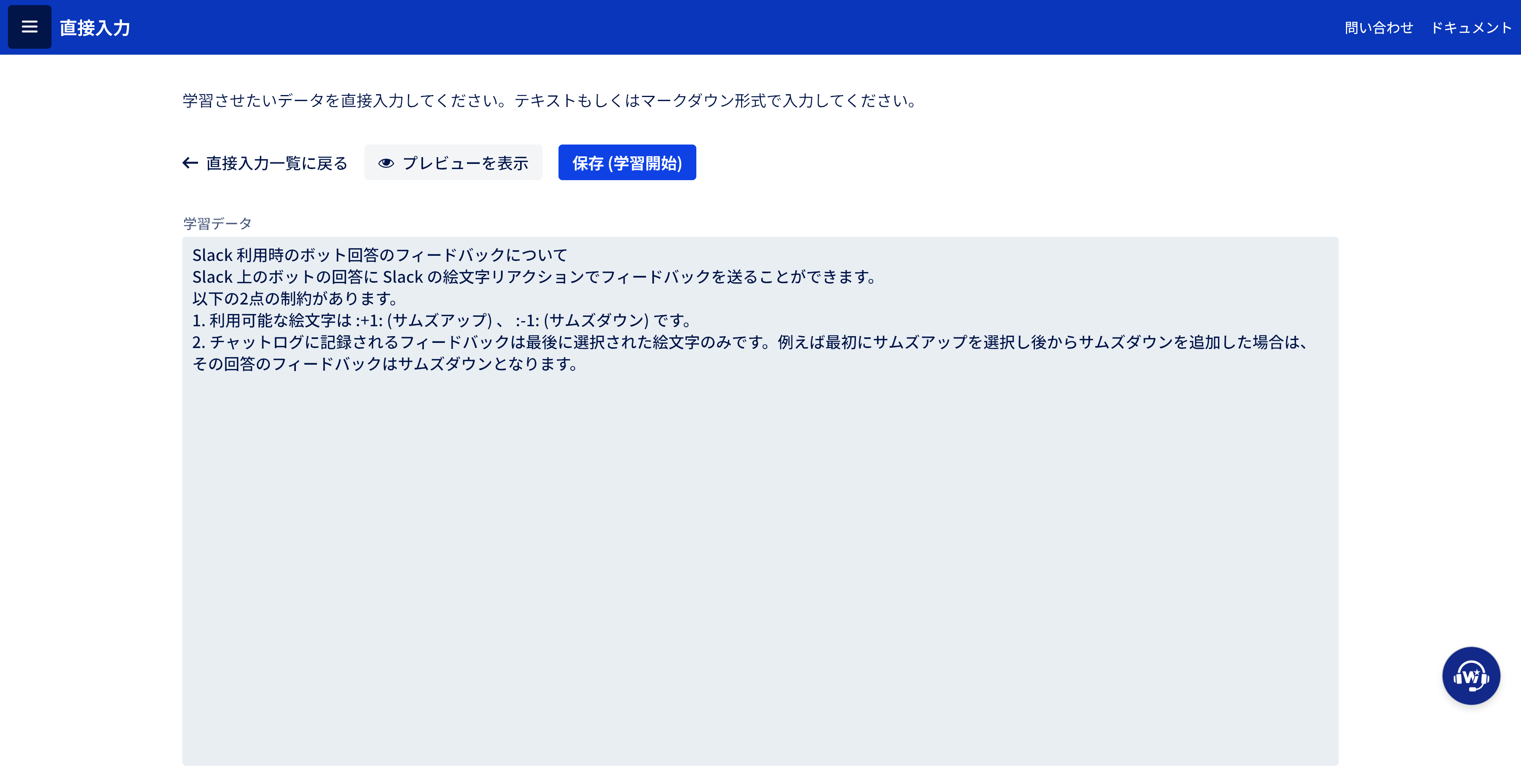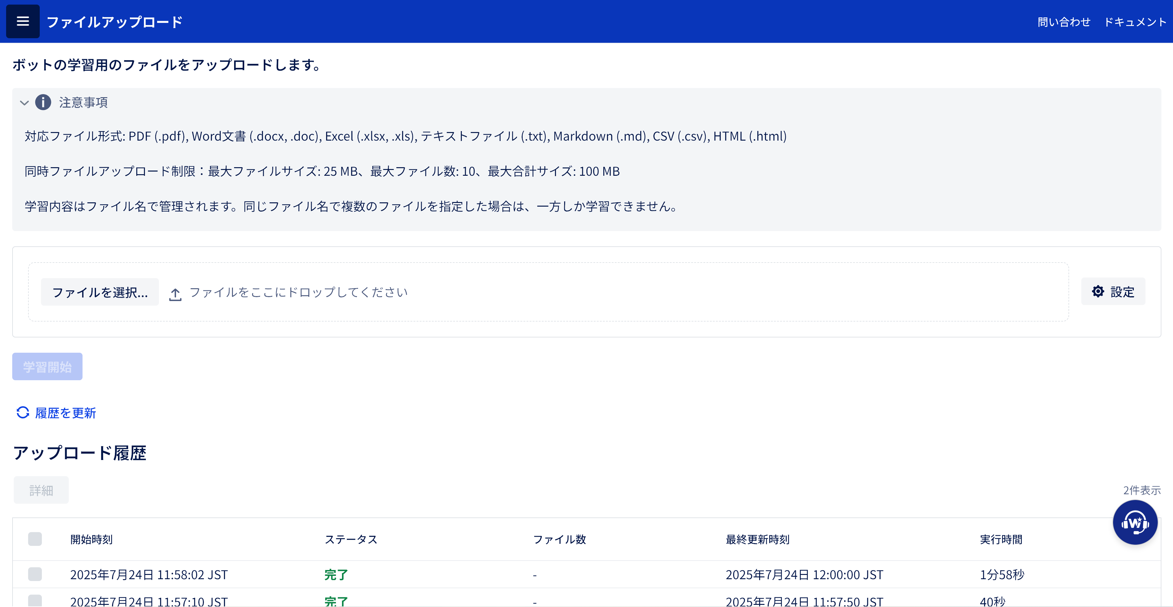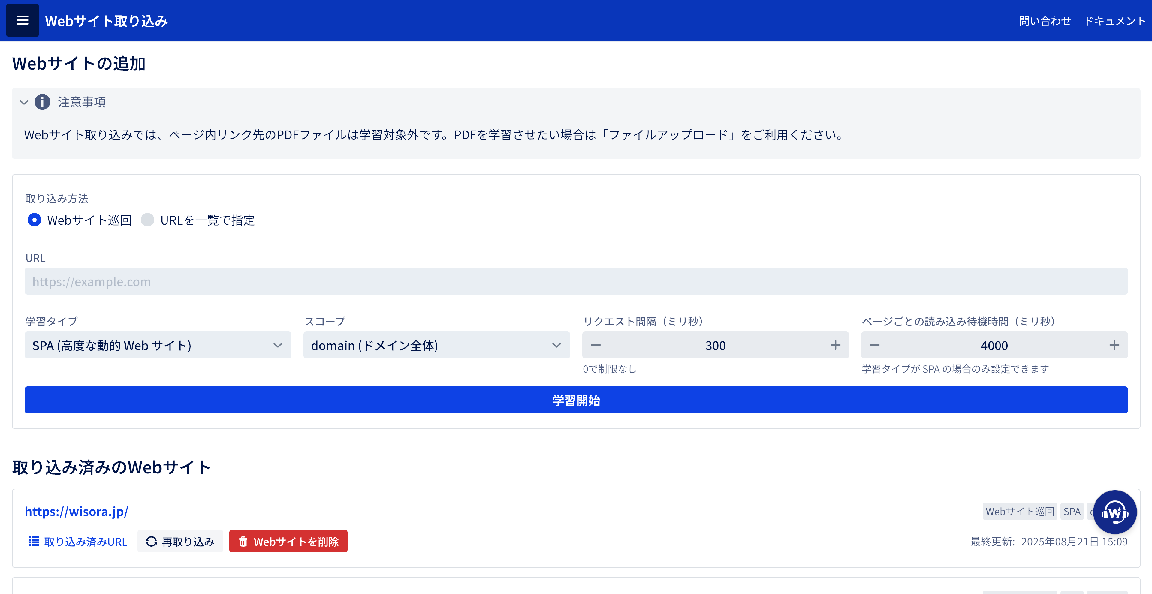 WebサイトのURLを指定するだけで、その内容を自動的に学習します。定期的な更新にも対応しています。