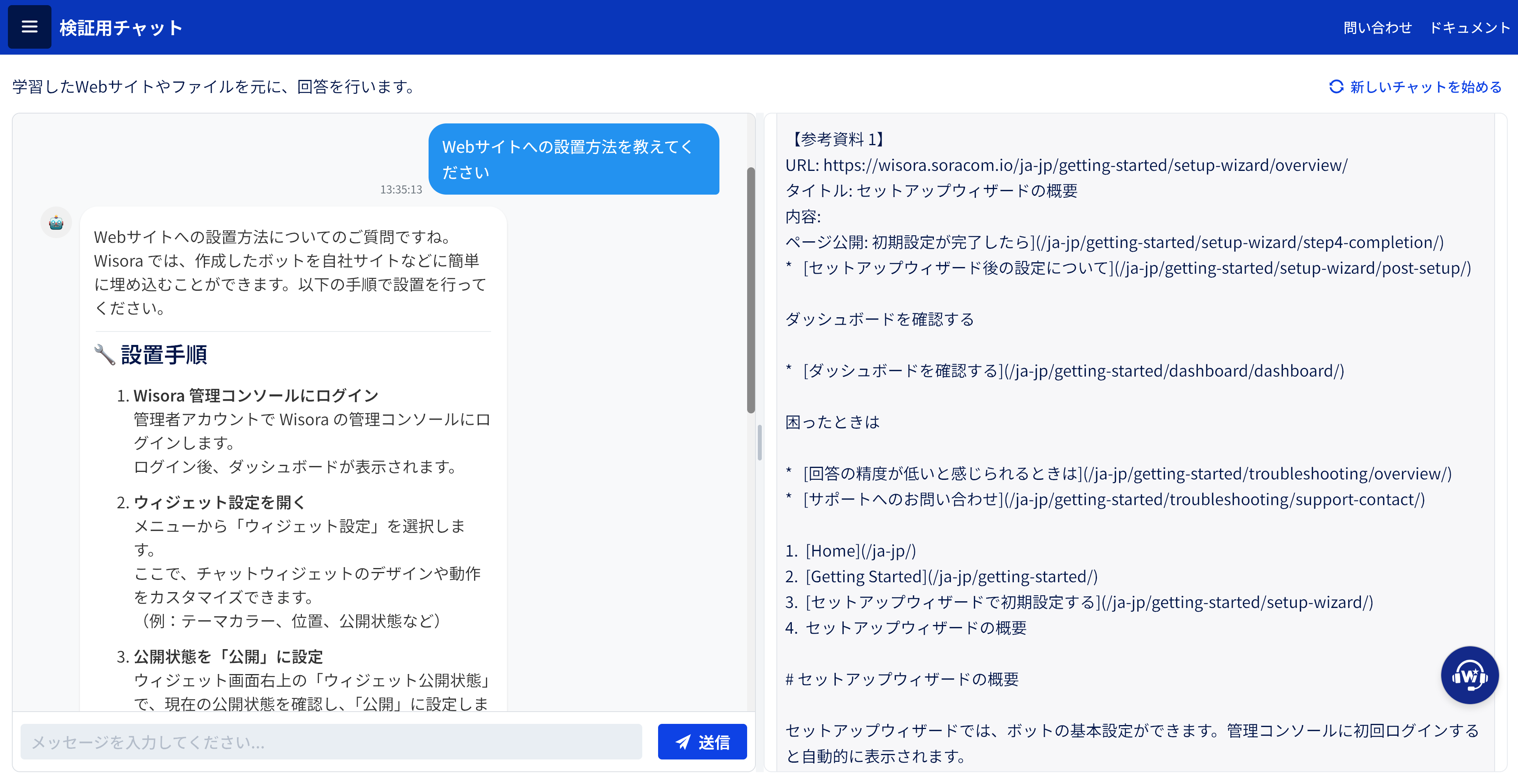 Wisoraでは、AIボットの利用状況や回答内容を可視化し、継続的に改善していくための機能を備えています。実際の利用データをもとに、回答品質の向上や運用の最適化につなげることができます。