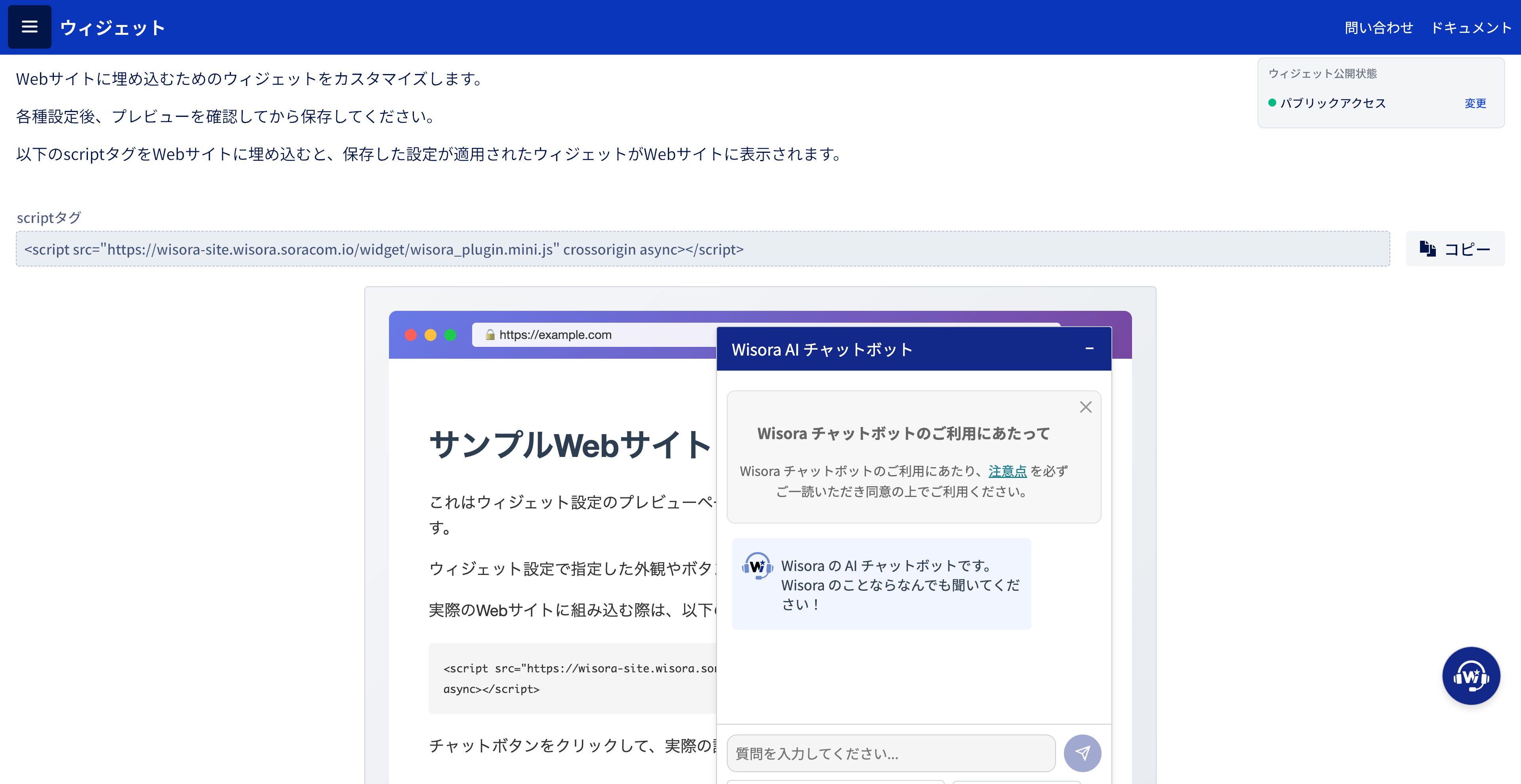 Webサイトでの問い合わせ対応から社内ツールでの活用まで、用途や環境に応じて、公開方法や利用範囲を柔軟に設定できます。